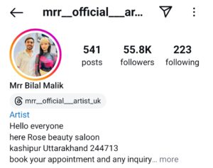 उत्तराखंड के काशीपुर निवासी बिलाल मलिक ने अपनी कला और संघर्ष के दम पर भारत के प्रमुख मेकअप आर्टिस्टों में अपनी पहचान बना ली है। छोटी सी उम्र में बिलाल ने वह ऊंचा मुकाम हासिल किया है, जिसकी वजह से वे आज लाखों लोगों के बीच लोकप्रिय हो चुके हैं। उनके इंस्टाग्राम अकाउंट Mrr_official_artist_uk पर लाखों फॉलोअर्स हैं और उनकी पोस्ट्स पर लाखों व्यूज आते हैं, जो उनकी सफलता को साबित करते हैं।