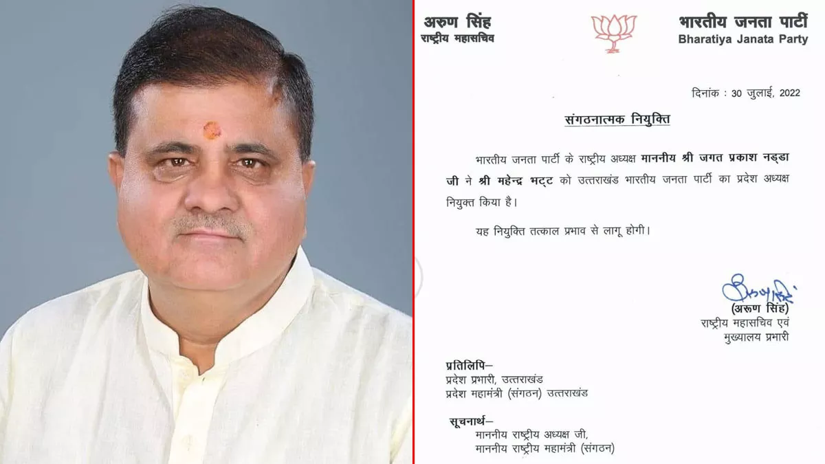 उत्तराखंड BJP में संगठनात्मक बदलाव – महेंद्र भट्ट दोबारा प्रदेश अध्यक्ष नियुक्त