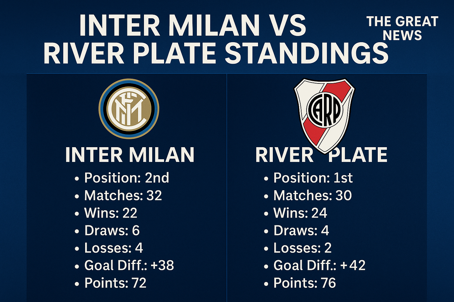 इंटर मिलान और रिवर प्लेट जैसे दो दिग्गज फुटबॉल क्लबों के बीच मुकाबला सिर्फ मैदान तक सीमित नहीं है, बल्कि दोनों की घरेलू लीग और इंटरनेशनल रैंकिंग में भी कड़ी टक्कर है। यहां जानिए 2025 में इन दोनों टीमों की लीग स्टैंडिंग्स और प्रदर्शन की पूरी रिपोर्ट।