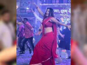 अभिनेत्री के इस लुक पर चार चांद उनकी साड़ी और हाथों की चूड़ियां और उनके ठुमके लगाने के लिए काफी है