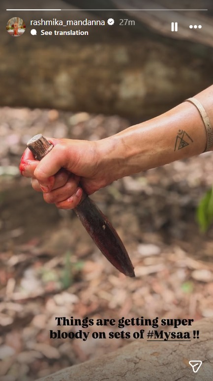 “पैन इंडिया नंबर 1 हीरोइन” के रूप में अपनी पहचान बना चुकीं रश्मिका मंदाना इन दिनों अपनी आने वाली फिल्म ‘मैसा’ (Mysaa) को लेकर जबरदस्त चर्चा में हैं। हाल ही में उन्होंने इस फिल्म के सेट से एक बेहद चौंकाने वाली झलक साझा की है, जिसने सोशल मीडिया पर हलचल मचा दी है। रश्मिका ने अपने इंस्टाग्राम पर एक विजुअल शेयर करते हुए कैप्शन में लिखा, “#Mysaa के सेट पर चीजें बहुत खूनी (bloody) होती जा रही हैं!!” उनके इस छोटे लेकिन प्रभावशाली संदेश ने फिल्म के डार्क और एक्शन से भरपूर होने का साफ संकेत दे दिया है, जिससे यह साफ है कि वह इस बार पर्दे पर कुछ बहुत ही खूंखार और पावरफुल पेश करने वाली हैं।