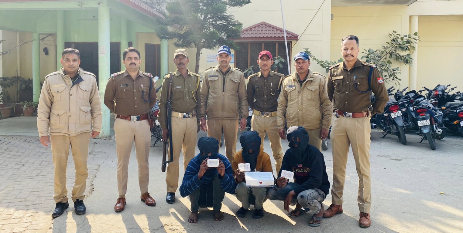 जसपुर : जनपद उधम सिंह नगर की युवा पीढ़ी को नशे के आंखों से बचाने के लिए जिला पुलिस मुखिया मंजूनाथ टीसी द्वारा नशा मुक्त अभियान चलाया जा रहा है। जिसके तहत कोतवाली प्रभारी थानाध्यक्ष द्वारा टीमें गठित कर दी गई है और नशे के कारोबारियों के ऊपर ताबड़तोड़ कार्रवाई होती हुई दिखाई दे रही है, उसी क्रम जसपुर कोतवाली प्रभारी द्वारा बनाई टीम ने पतरामपुर रोड श्याम स्कूल के पास तीन तस्करों को गिरफ्तार किया है