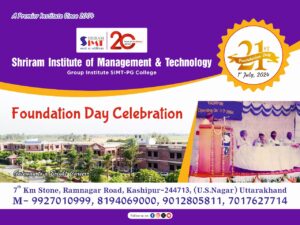 काशीपुर नगर तथा उससे जुड़े क्षेत्रों में व्यवसायिक शिक्षा का लगभग अभाव था अनेक बार विचार मन्थन करने के उपरान्त इस शून्य को भरने की प्रखर कामना की परिणति श्रीराम इन्स्टीट्यूट ऑफ मैनेजमैंट एण्ड टैक्नोलॉजी के रूप में हुई। इस संस्थान का उद्घाटन दिनांक 1 जुलाई 2004 को कुमाऊँ विश्वविद्यालय के तत्कालीन कुलपति प्रो0 आर0 सी0 पन्त एवं क्षेत्र के सांसद माननीय श्री के0 सी0 सिंह बाबा के कर कमलों से हुआ।