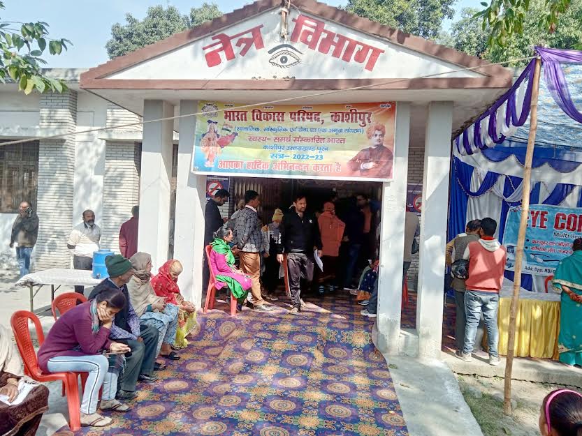 काशीपुर भारत विकास परिषद् काशीपुर और राजकीय चिकित्सालय के तत्वाधान में निःशुल्क नेत्र परिक्षण व मोतियाबिंद ऑपरेशन का दो दिवसीय शिविर का आयोजन आज से शुरू हुआ। मोतियाबिंद शिविर मे परिषद् के क्षेत्रीय सचिव अजय अग्रवालए अध्यक्ष प्रियांशु बंसलए सचिव सचिन अग्रवालए कोषाध्यक्ष अंकुर अग्रवालए डॉ. उदय शंकरए डॉ पीडी गुप्ता ने भारत माता और स्वामी विवेकानंद जी की तस्वीर के सम्मुऽ दीप प्रजवल्लन और पुष्प अर्पित कर शिविर का शुभारम्भ किया।