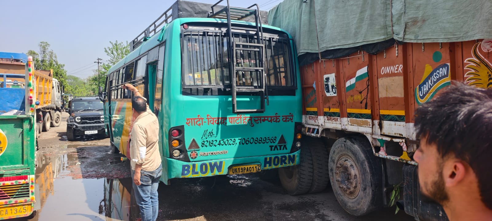 घटनाक्रम के अनुसार, काशीपुर की ओर जा रहे एक ट्रक और हल्द्वानी की ओर जा रही एक निजी बस (UK 19PA 0114 के बीच बीच तंग सड़क और ट्रैफिक के चलते आपस में हल्का सा घर्षण हो गया। फ़ोटो साफ़ बयां कर रही है कि दोनों वाहन विपरीत दिशा से आ रहे थे। इस मामूली रगड़ के बाद, बस चालक ने आपा खो दिया। कानून और व्यवस्था को ठेंगा दिखाते हुए उसने बस को ठीक बीच सड़क पर ही रोक दिया।
