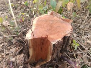 तराई पश्चिमी डिवीजन, रामनगर की पतरामपुर रेंज में भ्रष्टाचार किस कदर चरम पर है, यह बताने के लिए ये तस्वीरें ही काफी हैं, जो पतरामपुर के जंगलों से निकलकर सामने आई हैं। यहां एक पेड़ नहीं, दो पेड़ नहीं, चार पेड़ नहीं, बल्कि दर्जन से अधिक बेशकीमती खैर के हरे पेड़ भ्रष्टाचार की भेंट चढ़ चुके हैं। तस्करों के हौसले इतने बुलंद हैं कि पहले हरे पेड़ों पर आरी चलाई जा रही है, फिर उन पेड़ों के ठूंठों को कुल्हाड़ी से काटकर जमींदोज करने का प्रयास किया जा रहा था।