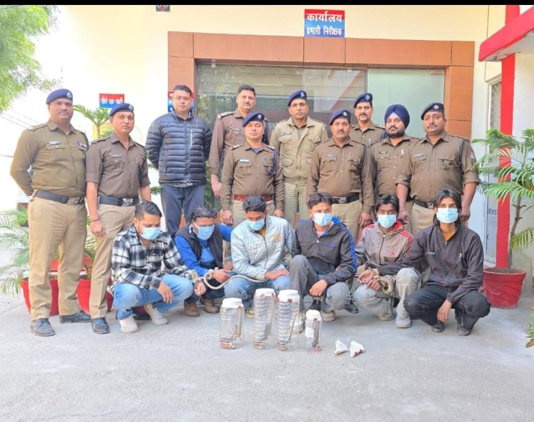 सघन चेकिंग के दौरान उपनिरीक्षक गणेश दत्त जोशी के नेतृत्व में पुलिस टीम द्वारा टेड़ा गांव जाने वाली सड़क पर चेकिंग के दौरान एक मोटरसाइकिल (UK19 B 4746) में सवार दो संदिग्ध युवकों — हिमांशु सिंह एवं विक्रांत मावी, दोनों निवासी ग्राम रजवाना, जिला बुलंदशहर, उत्तर प्रदेश को रोका गया।