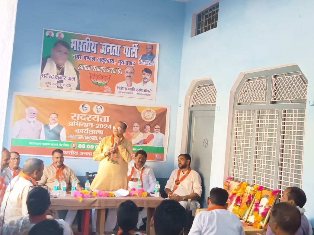 इस कार्यशाला में जिला अध्यक्ष आकाश पाल द्वारा सदस्यता अभियान के बारे में विस्तार से जानकारी दी गई। उन्होंने बताया कि मुरादाबाद जिले को तीन लाख सदस्य बनाने का लक्ष्य मिला है, भारतीय जनता पार्टी का सदस्य बनने के लिए 8800002024 मोबाइल नंबर पर मिस कॉल देकर तथा ऑफलाइन फॉर्म भरकर भी दे सकते हैं। सक्रिय सदस्य बनने के लिए कार्यकर्ता को लगभग 200 सदस्य बनाने होंगे प्रत्येक सदस्य का शुल्क केवल सौ रुपये निश्चित है इस सदस्यता अभियान 2024 से पहले भारतीय जनता पार्टी के 21 करोड़ सदस्य बनाकर रिकॉर्ड बनाया था जिला मुरादाबाद में यह सदस्यता अभियान 4 सितंबर से 25 सितंबर तक तथा 1 अक्टूबर से 15 अक्टूबर तक चलेगा। 18 वर्ष से अधिक आयु का नागरिक सदस्य बने की योग्यता रखता है जिला अध्यक्ष ने बताया कि अपराधी प्रवृत्ति के व्यक्ति को सदस्य नहीं बनाना है जो व्यक्ति भारतीय जनता पार्टी की संकल्पना को पूरा करेगा उसको ही सदस्य बनना है।