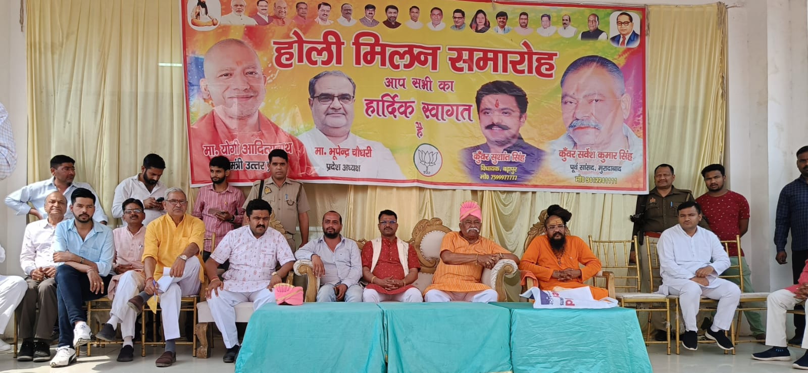 सोमवार को नगर के रतुपुरा मोड़ पर स्थित साधना पैलेस में भाजपा के कद्दावर नेता और पूर्व सांसद रहे कुंवर सर्वेश कुमार सिंह द्वारा आयोजित होली मिलन समारोह में हज़ारों की संख्या में नगर व लोकसभा क्षेत्र के लोगो की भारी भीड़ देखी गई।इस मौके पर वक्ताओं ने जंहा सभी लोगों को होली की शुभकामनाएं दीं वंही वक्ताओं ने आगामी लोकसभा चुनाव का भी ज़िक्र किया।ठाकुरद्वारा ब्लाक प्रमुख पति वीर सिंह सैनी ने होली मिलन समारोह में आये लोगों के सामने पूर्व सांसद के द्वारा क्षेत्र में कराए गए विकास कार्यों की बात करते हुए साफ कहा कि आगामी लोकसभा चुनाव में पूर्व सांसद को ही विजेता बनाना है ।उन्होंने कहा कि लोकसभा क्षेत्र में कुंवर सर्वेश सिंह की बराबरी का कोई नेता नही है वह केवल क्षेत्र के विकास की बात करते हैं और लोगो को जाति और धर्म के चश्मे से नही देखते हैं इसीलिए उन्हें इस क्षेत्र का बब्बर शेर कहा जाता है और हम ऐसे शेर को छोड़कर किसी के बहकावे में नही आ सकते हैं। पूर्व सांसद कुँवर सर्वेश कुमार सिंह के पुत्र और बढ़ापुर से दूसरी बार विधायक चुने गए कुंवर सुशांत सिंह ने इस दौरान लोगो को होली की शुभकामनाएं देते हुए कहा कि वह अपने विधानसभा क्षेत्र बढ़ापुर से दूसरी बार विधायक चुने गए हैं और इस सबके पीछे ठाकुरद्वारा क्षेत्र के लोगों का उन्हें भारी योगदान और आशीर्वाद प्राप्त हुआ है।