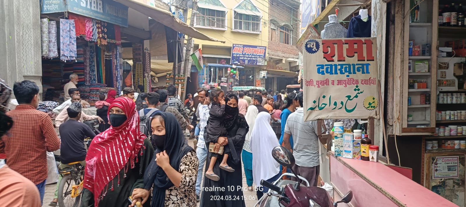 खचाखच भरे बाज़ार में सब कुछ मिल रहा है, अगर कुछ नही है तो वो है पुलिस प्रशासन