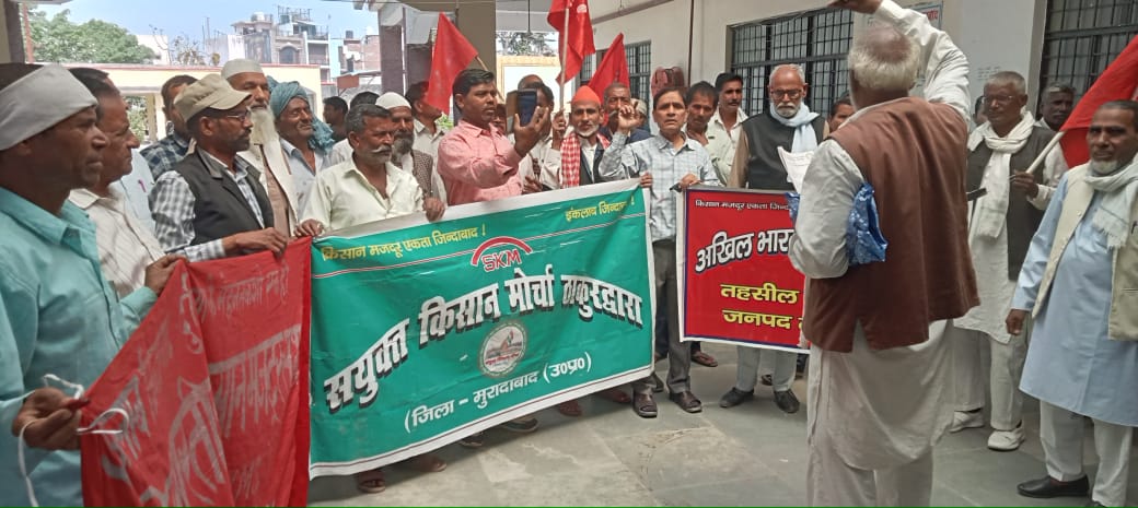 ठाकुरद्वारा : संयुक्त किसान मोर्चा उत्तर प्रदेश के कार्यकर्ताओं प्रदर्शन करते हुए ने राष्ट्रपति को संबोधित 5 सूत्रीय मांगों का ज्ञापन उपजिलाधिकारी को सौंपा है।