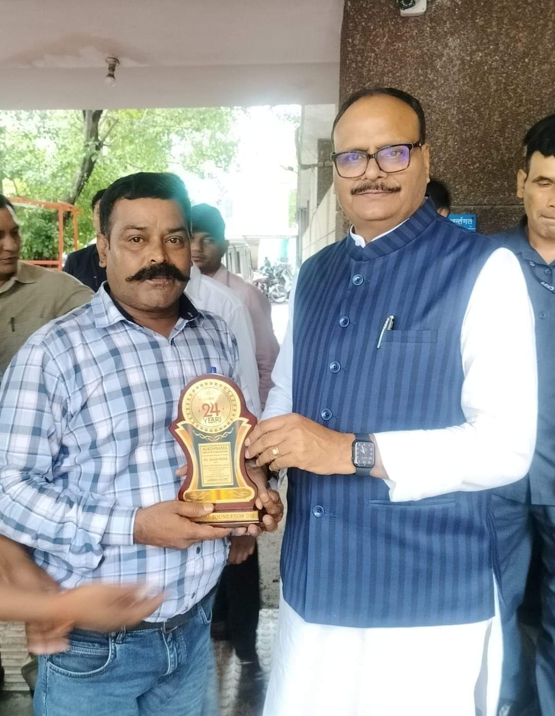 पत्रकार गोविंद अवस्थी को उप मुख्यमंत्री बृजेश पाठक ने स्मृति चिन्ह देखकर किया सम्मानित