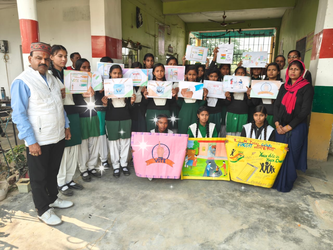 ठाकुरद्वारा : शुक्रवार को तहसील क्षेत्र के ग्राम पसियापुरा पदार्थ स्थित रामसरन लाल मेमोरियल इंटर कालेज में मतदाता जागरूकता का सन्देश देने हेतु एक पोस्टर एवं पेन्टिग प्रतियोगिता का आयोजन किया गया। जिसमें छात्र/छात्राओं ने जनमानस को जागरूक करने वाले मतदाता जागरूकता के लिए विभिन्न प्रकार के आकर्षक पोस्टर एवं पेन्टिग बनाई गए l पोस्टर एवं पेन्टिग प्रतियोगिता में कुo अजरा प्रथम कु०शिखा द्वितीय एवं कु o अंजलि ने तृतीय स्थान प्राप्त किया। इस मौके पर विजेताओं को राष्ट्रीय हिंदू रक्षा सेना के प्रदेश अध्यक्ष एवं प्रधानाचार्य जगदीश सक्सेना द्वारा पुरस्कृत किया गया।