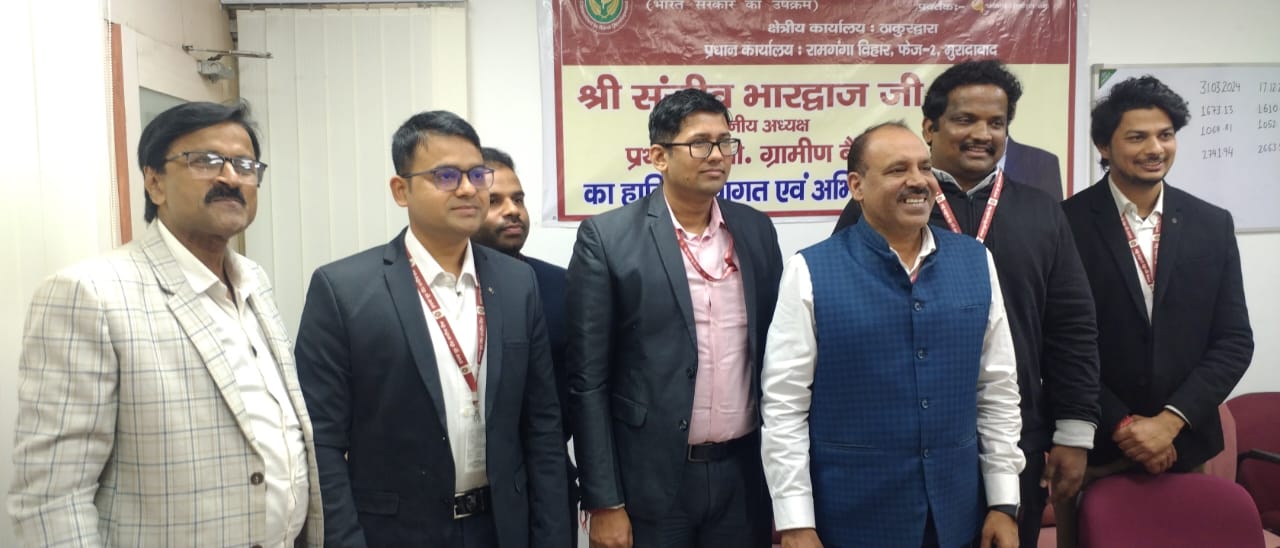 ठाकुरद्वारा : नगर के प्रथमा यूपी ग्रामीण बैंक पँहुचे अध्यक्ष संजीव भारद्वाज ने क्षेत्रीय कार्यालय में गोष्ठी का आयोजन कर जागरूक करते हुए बताया कि प्रथमा ग्रामीण बैंक द्वारा किसानों के आय दोगुनी करने के उद्देश्य से विशेष अभियान चलाया जा रहा है।