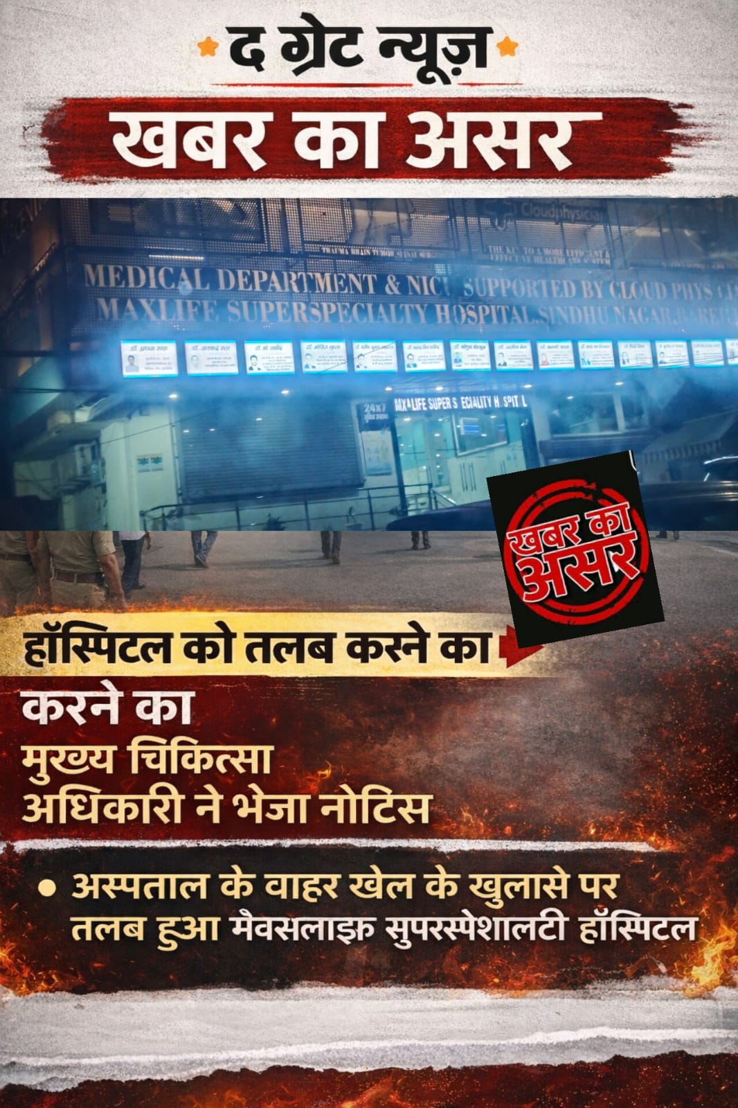 बरेली : जनपद के स्वास्थ्य महकमे में उस वक्त हड़कंप मच गया जब ‘द ग्रेट न्यूज’ ने ‘मैक्सालाइफ’ बनाम ‘मैक्सलाइफ’ अस्पताल के भ्रामक खेल का पर्दाफाश किया। खबर का कड़ा संज्ञान लेते हुए मुख्य चिकित्सा अधिकारी (CMO) बरेली ने संबंधित अस्पताल को कारण बताओ नोटिस जारी कर दिया है। विभाग ने अस्पताल संचालक को अगले 3 दिवस तक का अल्टीमेटम देते हुए सभी दस्तावेजों के साथ पेश होने का आदेश दिया है।