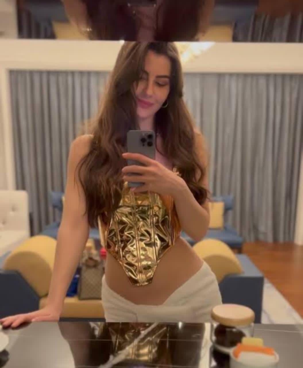 अरबाज खान की गर्लफ्रेंड बोल्डनेस में किसी से कम नहीं है। जॉर्जिया एंड्रियानी अक्सर अपनी सुपरहॉट फोटोज और बोल्ड लुक से हर लिमिट को पार कर देती है। जॉर्जिया की कातिलाना अदाएं फैंस को अपनी ओर आकर्षित करती है। वहीं इस बार जो जॉर्जिया ने वीडियो शेयर की है उससे देखकर सबके मुंह से बस ufff soo hot जैसे तमाम कॉम्प्लीमेंट उनकी वीडियो को देखकर निकल रहे है। एक्ट्रेस जॉर्जिया ने बदन पर तौलिया लपटेकर कातिलाना पोज दे रही है और मिरर के सामने खड़े होकर बोल्ड वीडियो रिकॉर्ड करती हुई नजर आ रही है। जॉर्जिया वीडियो में गोल्डन कलर के टॉप में नजर आ रही है और एक्ट्रेस ने वेस्ट में तौलिया लपेटा हुआ है। इस रिवॉल्विंग हॉट ड्रेस को पहनकर जॉर्जिया किलर लुक दे रही है। उधर जॉर्जिया के इस लुक पर फैंस उनकी तारीफ कर रहे है।