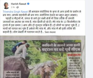 पूर्व सीएम त्रिवेंद्र को हाथी ने दोड़ाया, हरीश रावत ने कहीं ये बड़ी बात