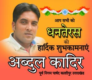 उत्तराखण्ड पूर्व निगम पार्षद काशीपुर अब्दुल कादिर की ओर से सभी प्रदेशवासियों को धनतेरस की हार्दिक शुभकामनाएं October 22, 2022October 22, 2022 Advertisements पूर्व निगम पार्षद काशीपुर अब्दुल कादिर की ओर से सभी प्रदेशवासियों को धनतेरस की हार्दिक शुभकामनाएं Advertisements Advertisements THE GREAT NEWS